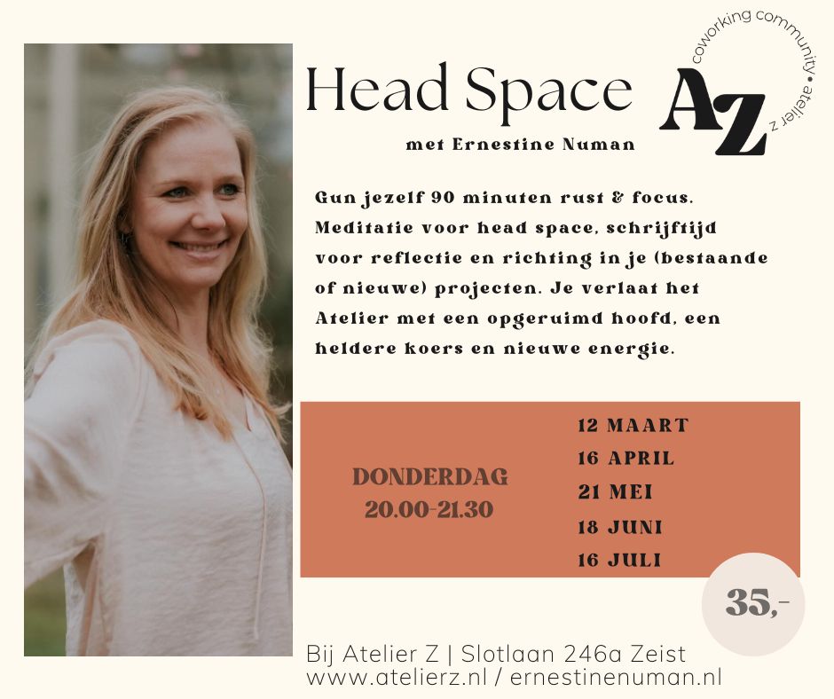Rust in je Hoofd, Richting in je Project Tijdens dit event zoeken we eerst de ontspanning op, aan de hand van geleide meditatieoefeningen. Hierdoor ontstaat er ruimte in je hoofd....